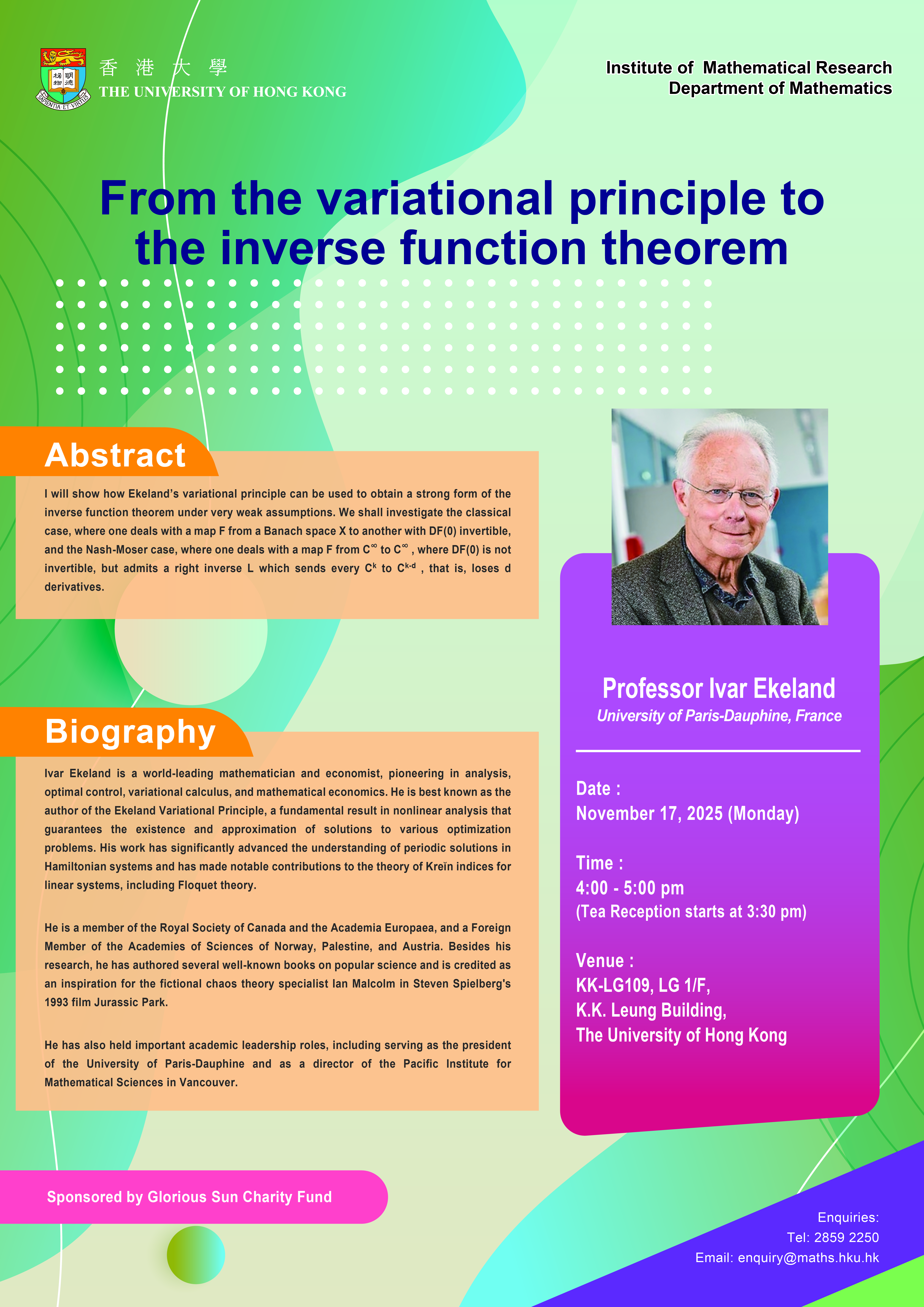 The Institute of Mathematical Research exemplifies the unique role HKU plays as a gateway for pioneering research, international scholarly exchange and world-class training. In Mathematics we link our region with the rest of the world.